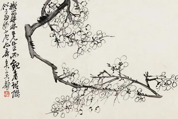 梅花对于吴昌硕来说具有极其特殊的意义。他一生种梅、赏梅、咏梅、画梅,去世前还立遗嘱命其三子将其葬于杭州超山宋梅亭畔,足见其对梅花的钟爱。