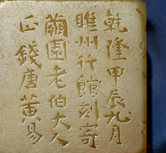 边款:乾隆甲辰九月睢州行馆刻寄繭园老伯大人正,钱唐黄易。