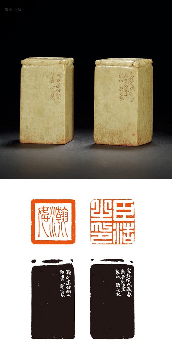 边款:1.瀚如属仿明人印法,辅之制。 2.宣统庚戌岁春,为瀚如先生制此,辅之记。