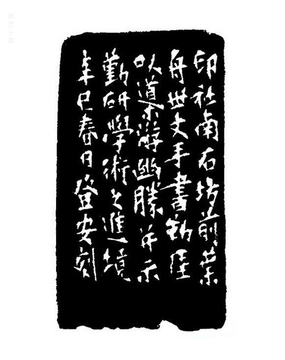 印社南石坊前,叶舟世丈手书勒崖,以导游幽胜,并示勤研学术之进境。辛巳春日,登安刻。