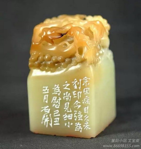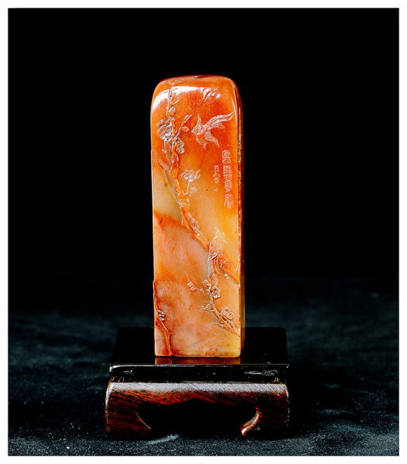 章,首德次符。德,即质地。几百年前,古人作出这样的衡量章之价值首则。今天,同样如此。大自然弱肉强食,适者生存。它总是把最精华的物质给了最强壮的生物。寿山石也一样,只有经历了大自然的特殊恩泽和自身的强力吸收,才能成为质地出众,耀眼夺目的石头,从而打造出一方质地出众的章。在市场上我们经常看到同样品种的章会由于质地的悬殊在价格上有着几十倍甚至百倍的差距。如果以时间来换算或许会更好理解。以一个矿洞作为一台生产机器,在同样的时间,一个矿洞可以生产出成千上万质地普通的章,而只能生产出一方质地优异的章。也就是说生产一方质地优异的章所耗费的时间是普通章的成千上万倍。所以它的贵是有理由的:它付出了时间的代价。质地,是衡量章的首要原则,我相信几百年后同样如此。