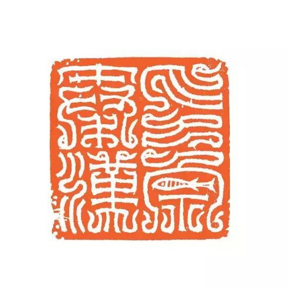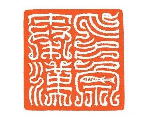汉代的鸟虫书印章,包括后人创作的汉式的鸟虫书印章,比如说方介堪先生刻的等等,这种印章章法是比较简单的,它基本上是采用四个字的均分印面,然后每个字笔画稀疏相等的一种形态。在这种情况下我们就采用直接反写上石印稿的方法,不再采用复写上石。