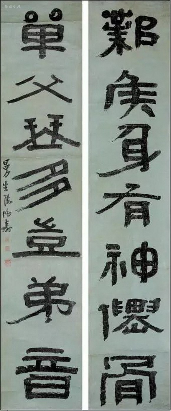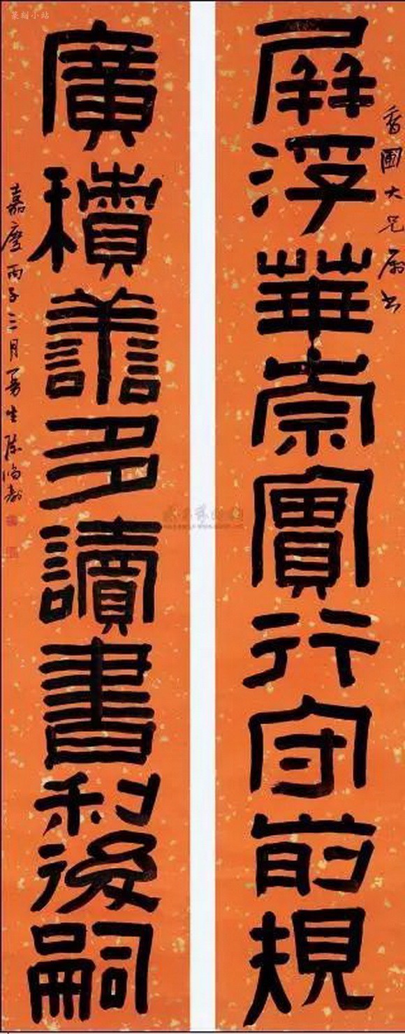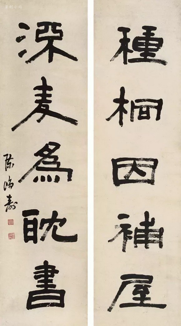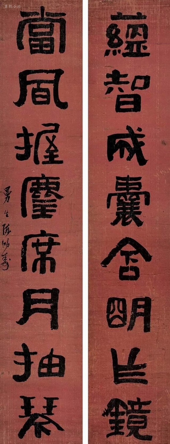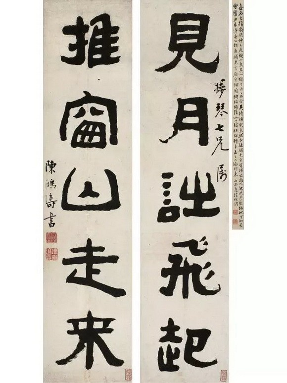 陈鸿寿的隶书较之以往的隶书具有“狂怪”的特点,说明他有创新的勇气和才能,但在结字和章法上,用笔仍然属守古法,笔笔中锋,力透纸背。