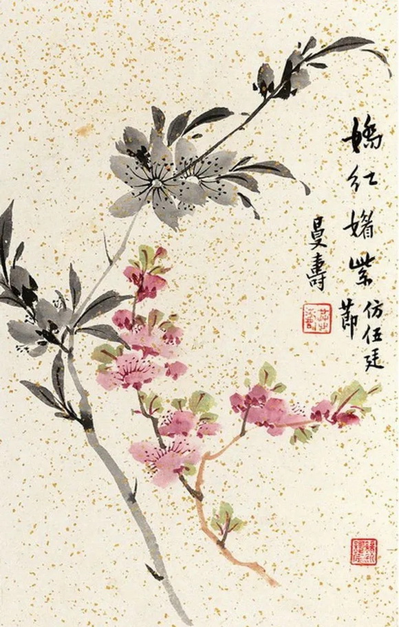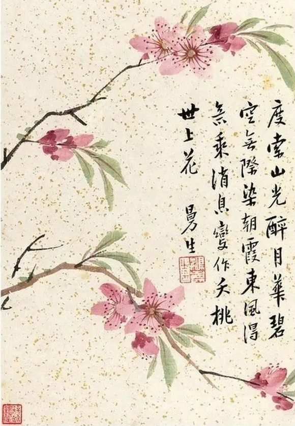 度索山光醉月华,碧空无际染朝霞。东风得意乘消息,变作夭桃世上花。曼生。