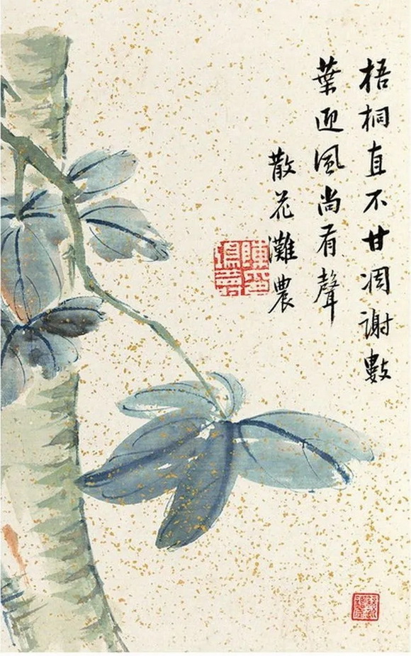 梧桐直不甘凋谢,数叶迎风尚有声。散花滩农。