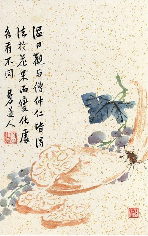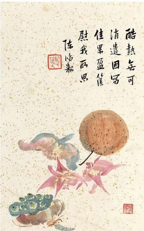 酷热无可消遣,因写佳果盈筐,慰我所思。陈鸿寿。