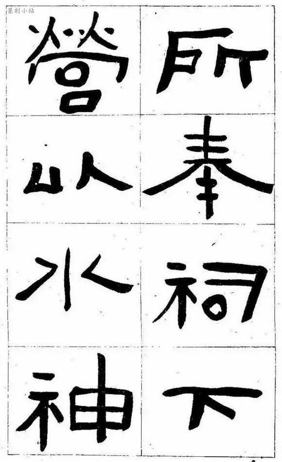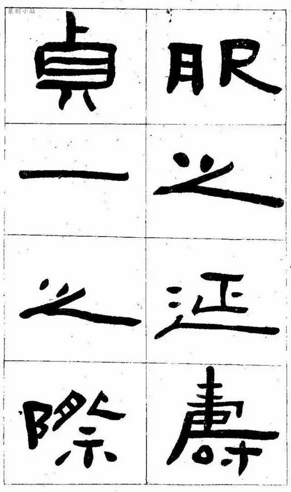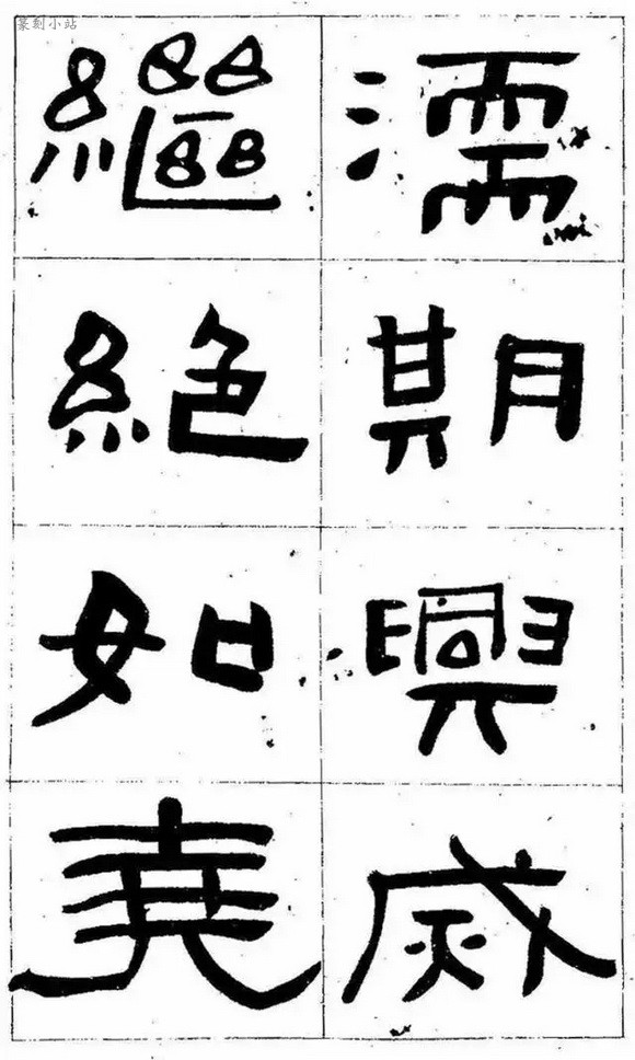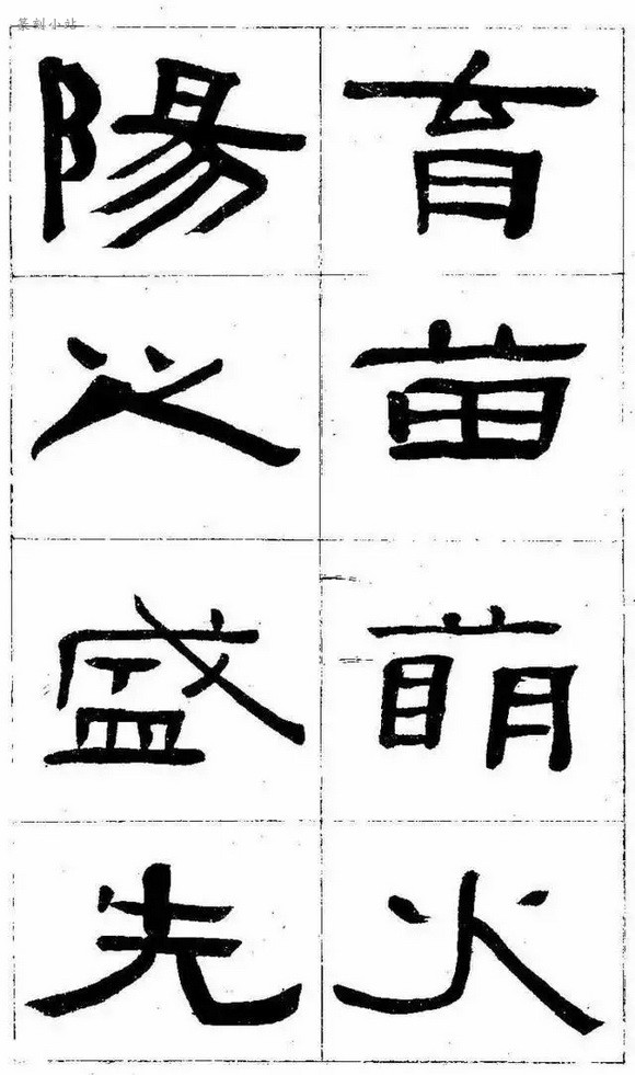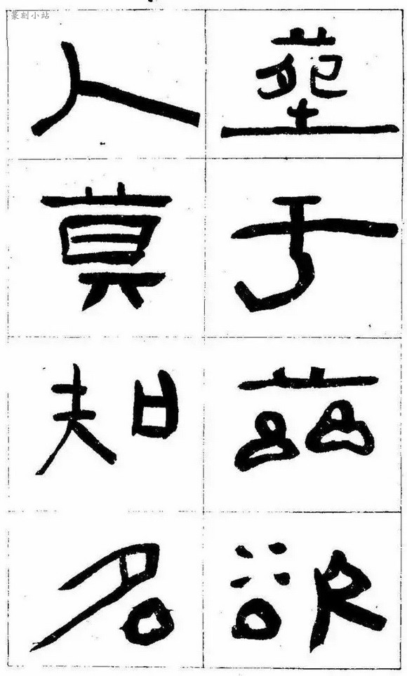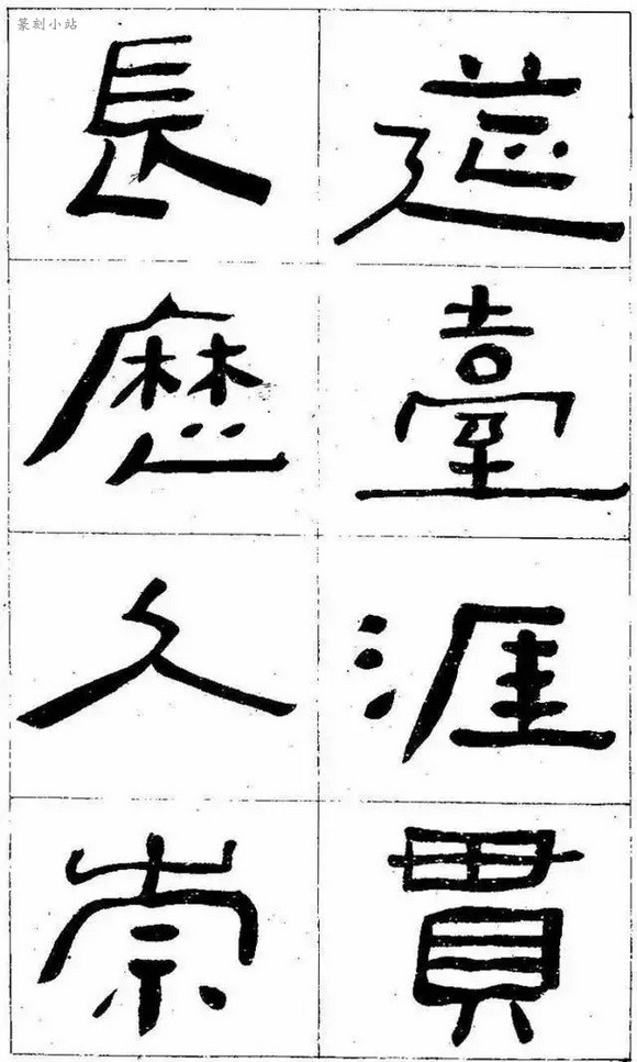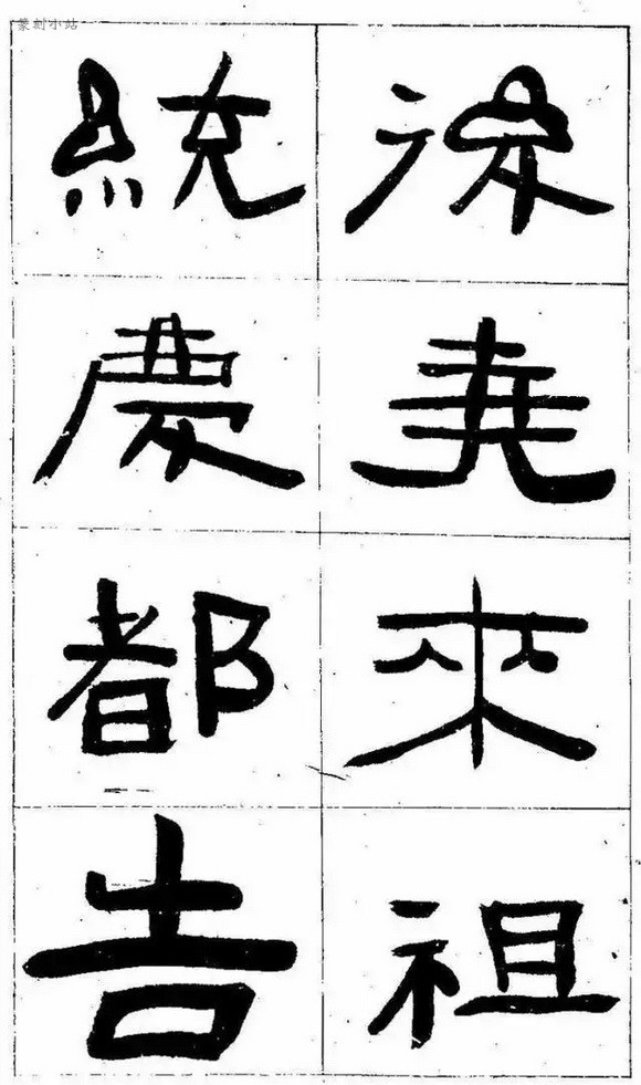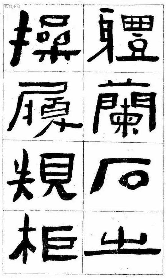 陈鸿寿(1768~1822)书法以隶书最为著名。他的隶书清劲潇洒,结体自由。穿插挪让,相映成趣,在当时是一种创新的风格。他广泛学习汉碑,尤其善于从汉摩崖石刻中汲取营养,在用笔上形成了金石气十足、结体奇特的个人面目。笔画圆劲细插,如银画铁钩,意境萧疏简淡,雄浑瓷肆,奇崛老辣。陈鸿寿的隶书较之以往的隶书具有“狂怪”的特点,说明他有创新的勇气和才能,但在结字和章法上,用笔仍然属守古法,笔笔中锋,力透纸背。