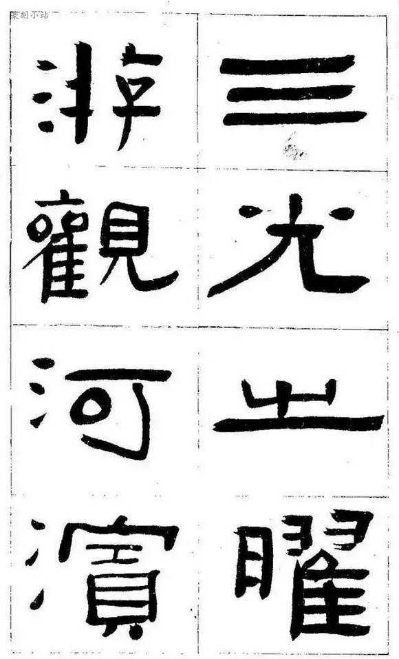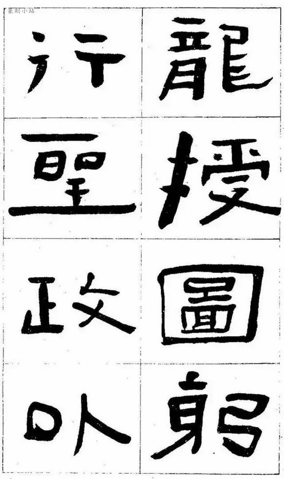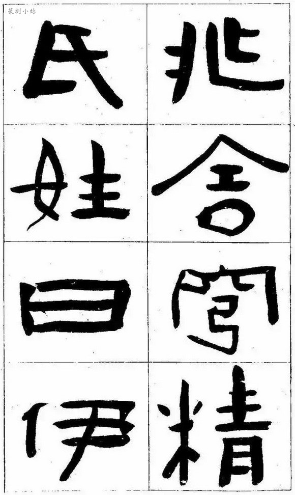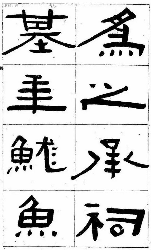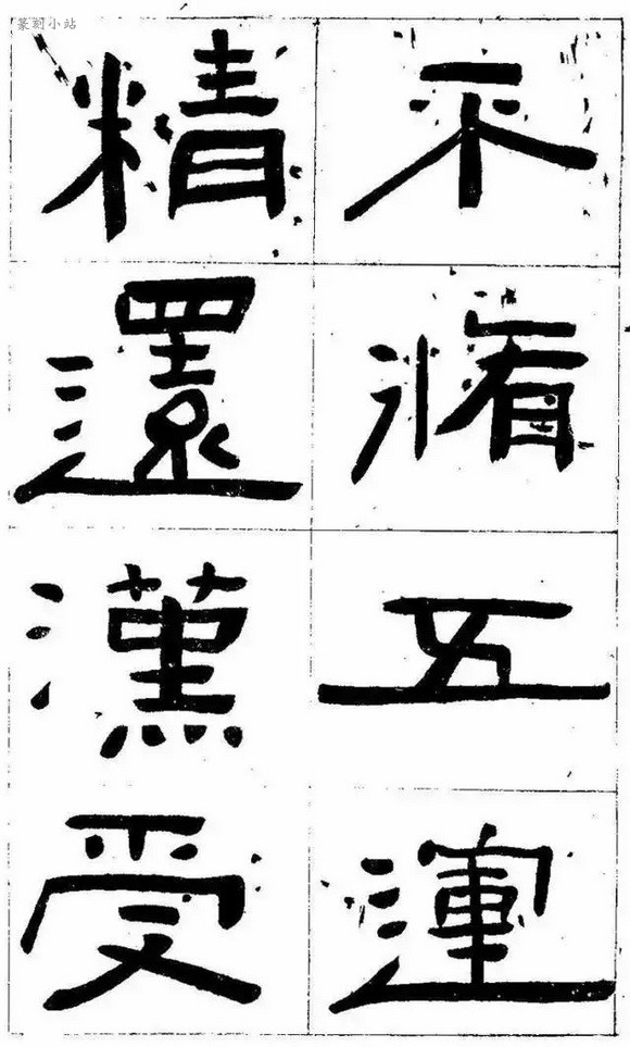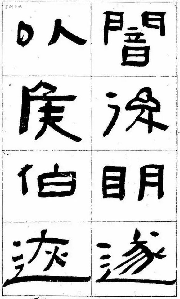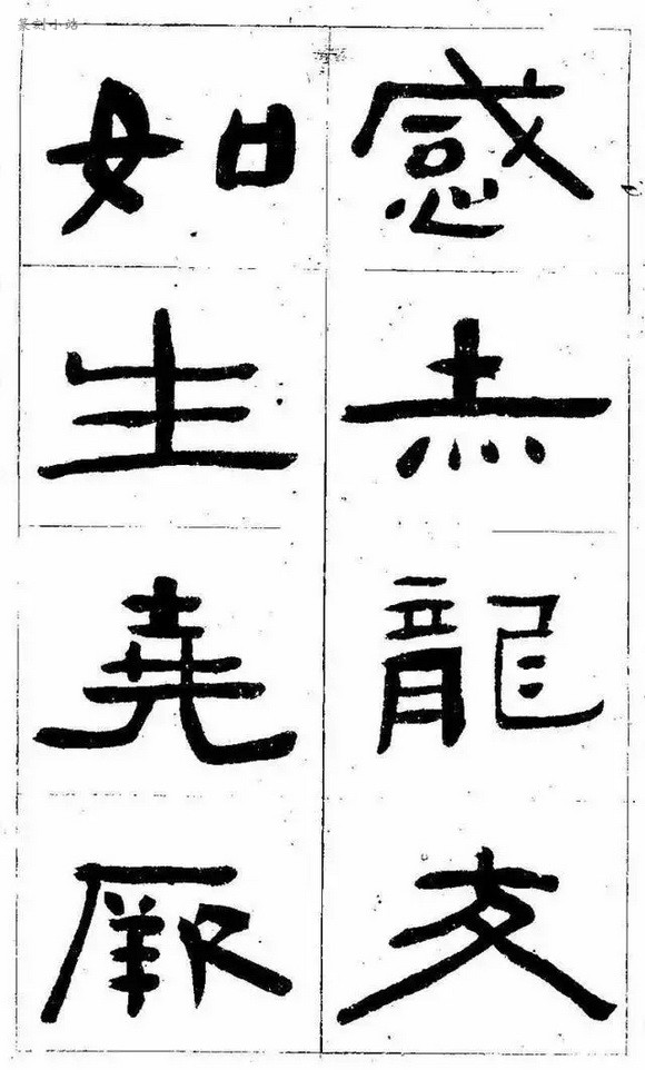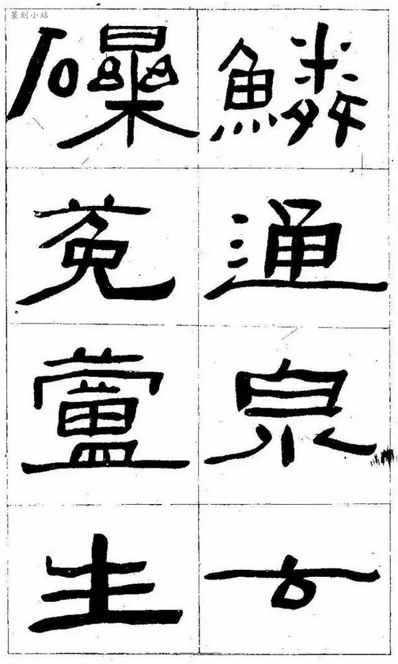 陈鸿寿(1768~1822)书法以隶书最为著名。他的隶书清劲潇洒,结体自由。穿插挪让,相映成趣,在当时是一种创新的风格。他广泛学习汉碑,尤其善于从汉摩崖石刻中汲取营养,在用笔上形成了金石气十足、结体奇特的个人面目。笔画圆劲细插,如银画铁钩,意境萧疏简淡,雄浑瓷肆,奇崛老辣。陈鸿寿的隶书较之以往的隶书具有“狂怪”的特点,说明他有创新的勇气和才能,但在结字和章法上,用笔仍然属守古法,笔笔中锋,力透纸背。