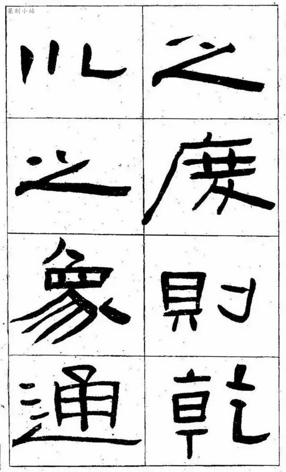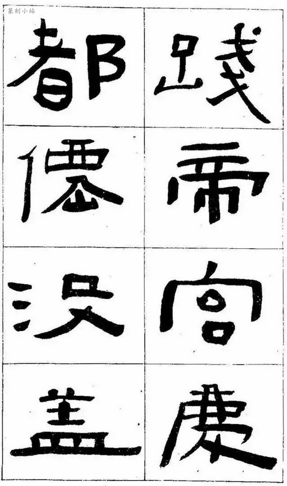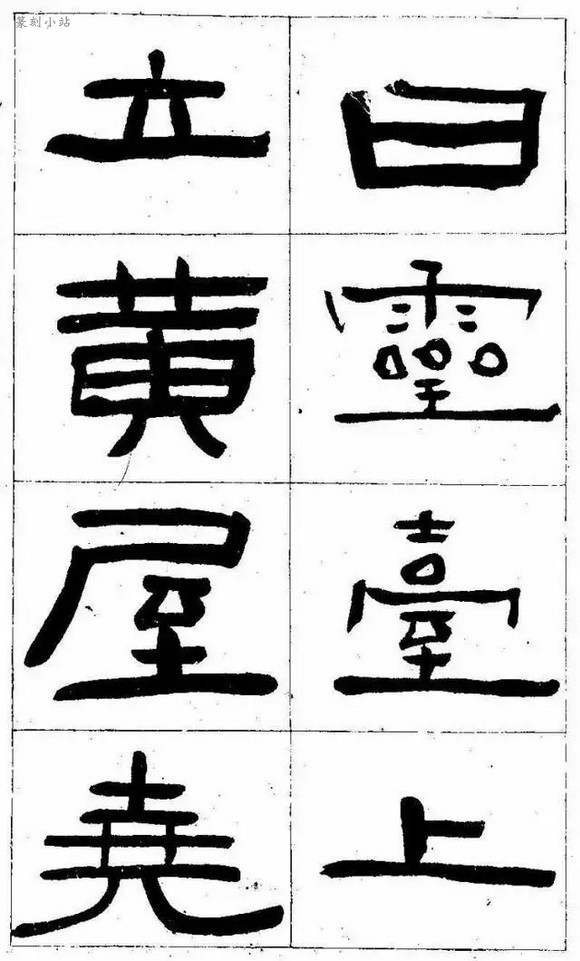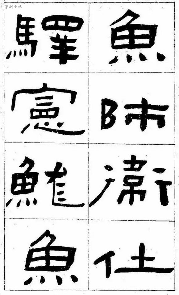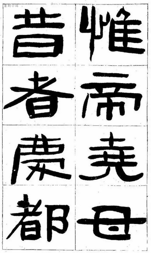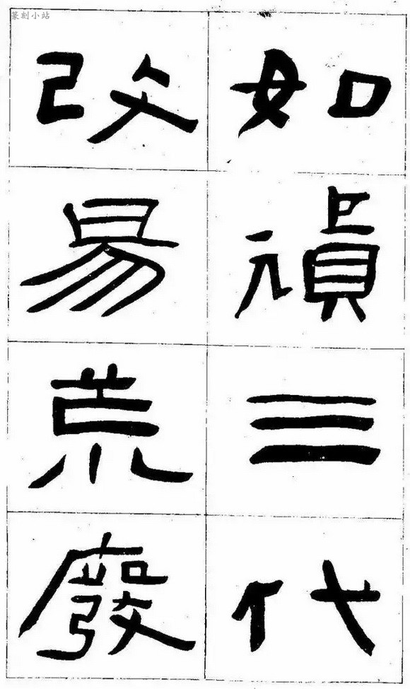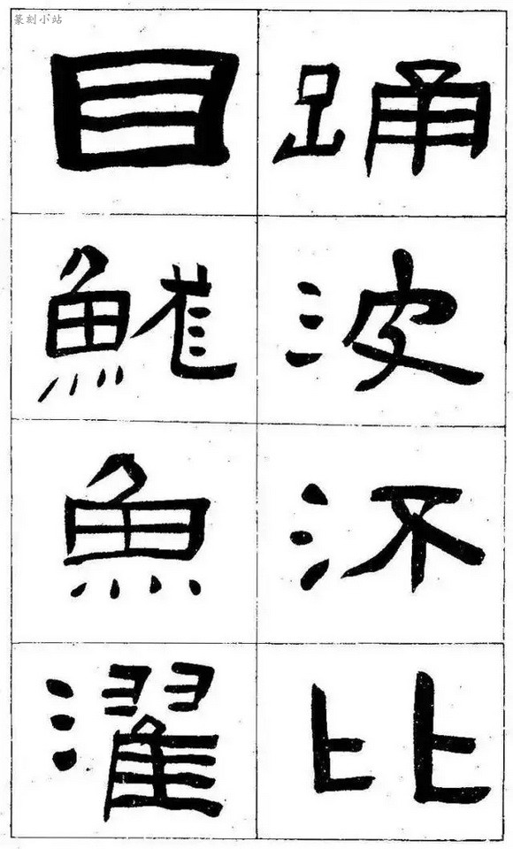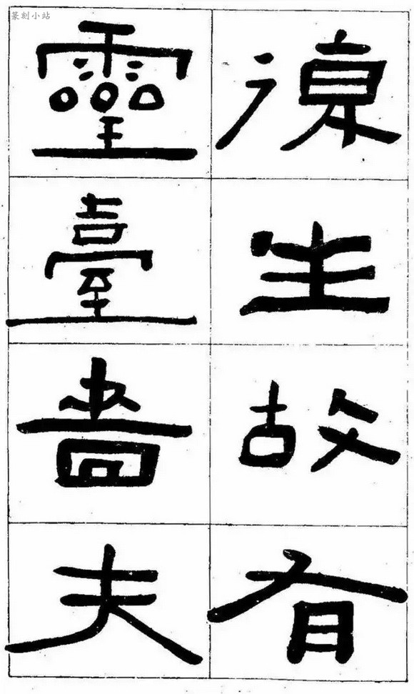 陈鸿寿(1768~1822)书法以隶书最为著名。他的隶书清劲潇洒,结体自由。穿插挪让,相映成趣,在当时是一种创新的风格。他广泛学习汉碑,尤其善于从汉摩崖石刻中汲取营养,在用笔上形成了金石气十足、结体奇特的个人面目。笔画圆劲细插,如银画铁钩,意境萧疏简淡,雄浑瓷肆,奇崛老辣。陈鸿寿的隶书较之以往的隶书具有“狂怪”的特点,说明他有创新的勇气和才能,但在结字和章法上,用笔仍然属守古法,笔笔中锋,力透纸背。