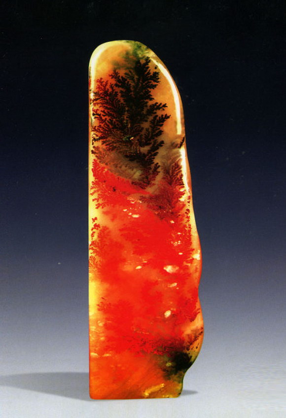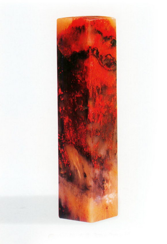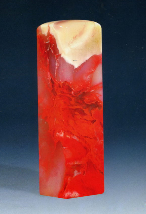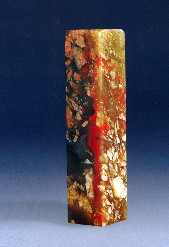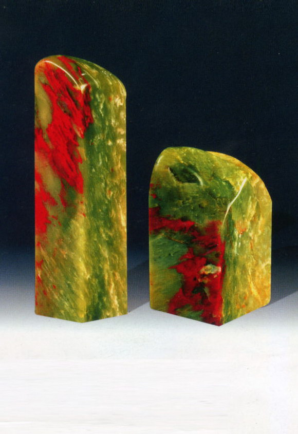 (14)龙血红:石体血色,黄色青色相衬。血红透黄,显帝位之尊;地润泛青,露王者之气。“中华神州龙吞敌,民族英雄血铸魂”。