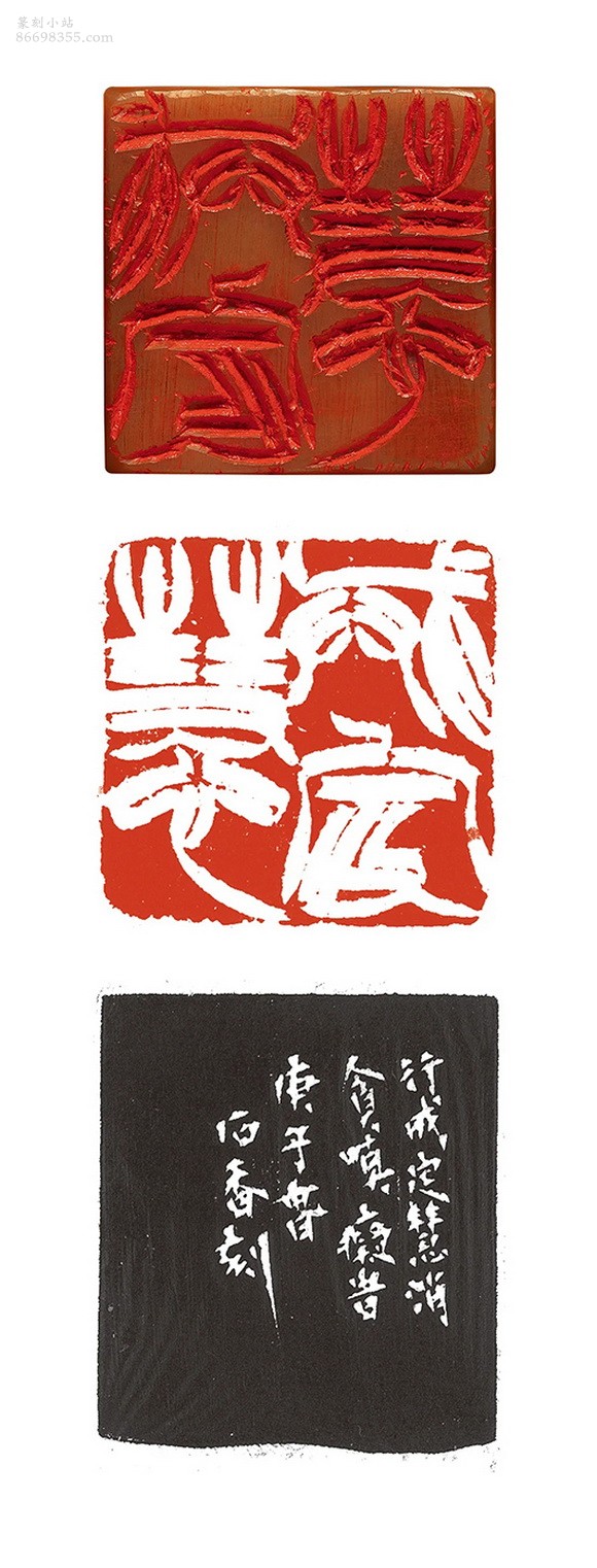边款:行成定慧消贪嗔痴者,庚子春,石香刻。
