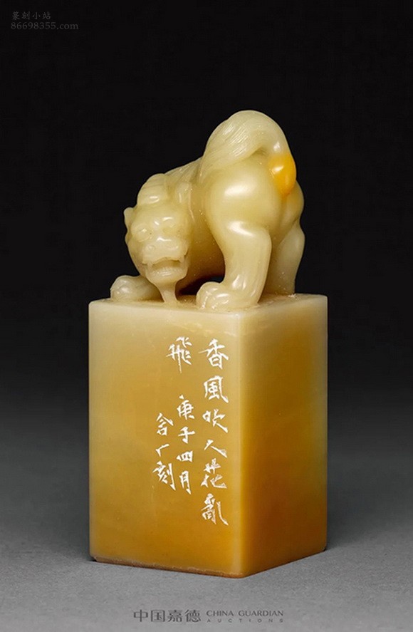 汪黎特刻 “香风吹人花乱飞”青田石兽钮印章