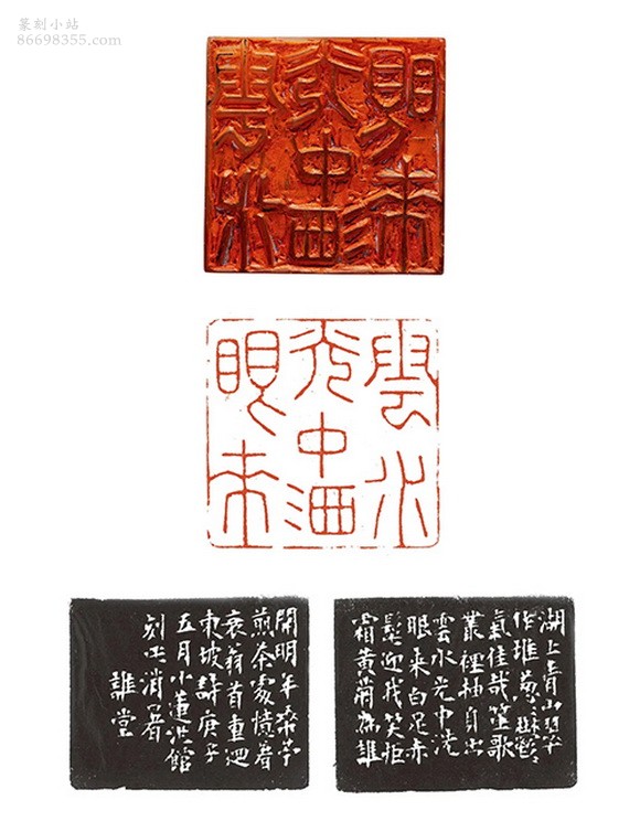 边款:湖上青山翠作堆,葱葱郁郁气佳哉。笙歌丛里抽身出,云水光中洗眼来。白足赤髭迎我笑,拒霜黄菊为谁开。明年桑苎煎茶处,忆著衰翁首重回。东坡诗庚子五月小莲池馆刻此消暑。谁堂。