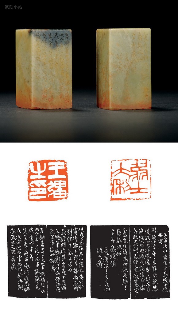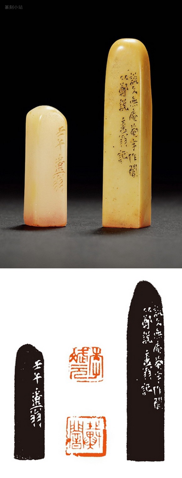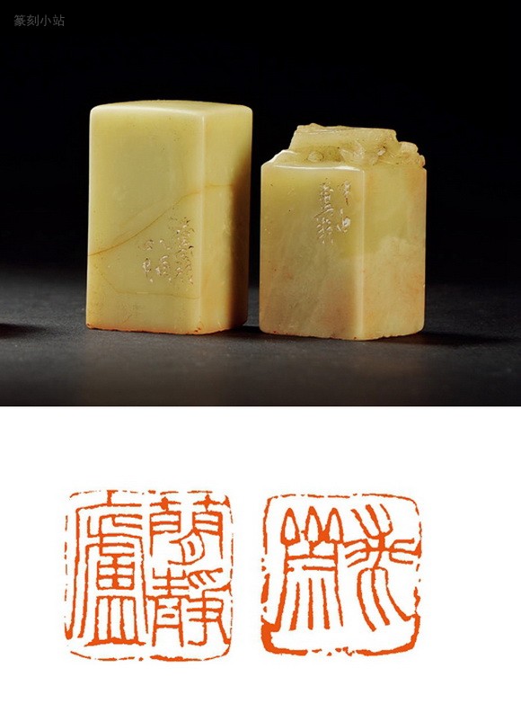 边款:1.维城吾兄文房,戊子九月散木。 2.承福先生属正,粪翁仿汉印。