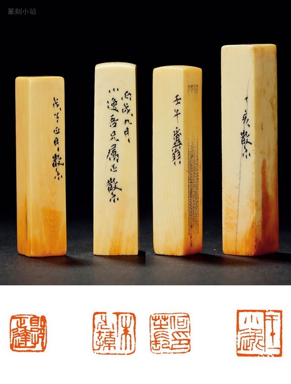 边款:1. 二十六年八月,粪翁。 2.癸未四月,粪翁。 3.二十九年四月刻为文渊先生,粪翁。 4.二十六年十月,粪翁。
