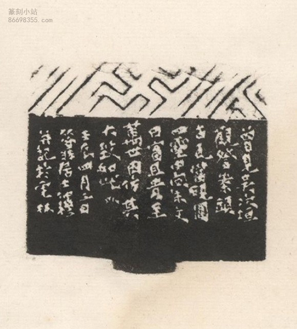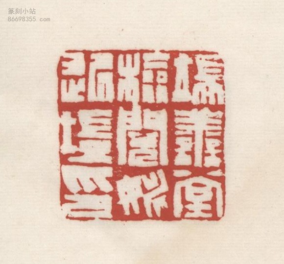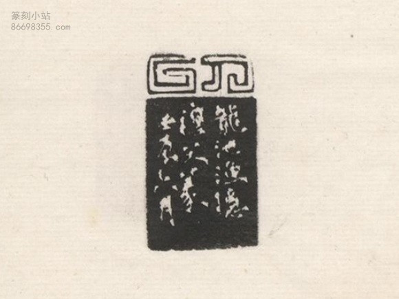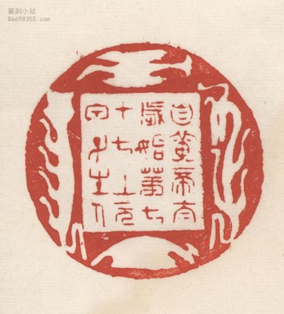 而笔者从赵氏的同乡后学谢玉岑(1898年-1935年),名觐虞,常州人。工诗文、书法,能画,尤精词学。谢稚柳兄)的诗中写道:“吾常健腕数老铁,苦铁而今更擅场。星宿源头一川水,手扶虬凤共翱翔。(并注:吾常赵老铁穆甫出仪征吴让之熙载门下,治印能融合秦汉六朝,凡符玺、陶器、砖镜瓦当之法,当世惟吴缶老足与抗衡。)”