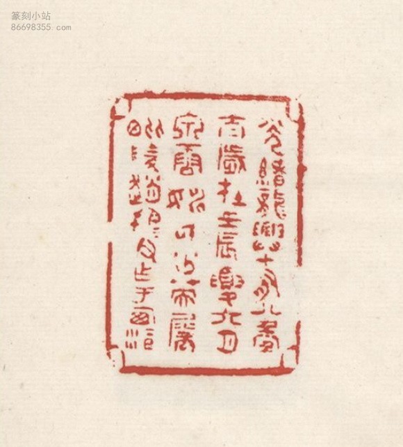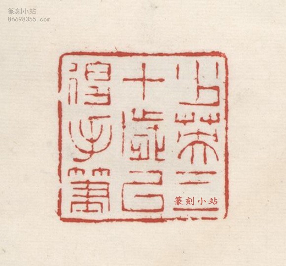 读序言可知印人赵氏别署甚多,想必是从其刻印边款中得知,这可为艺苑存一故实。至于称其“生于咸丰,殁于光绪”,而据今人韩天衡编著《中国印学年表》记载:“赵穆,清道光廿五年(1845年,乙巳)生,光绪廿年(1894年,甲午)卒。”又序中称其“不为时会所囿,而刀法险劲,尤非吴、赵之辈所堪几及”。