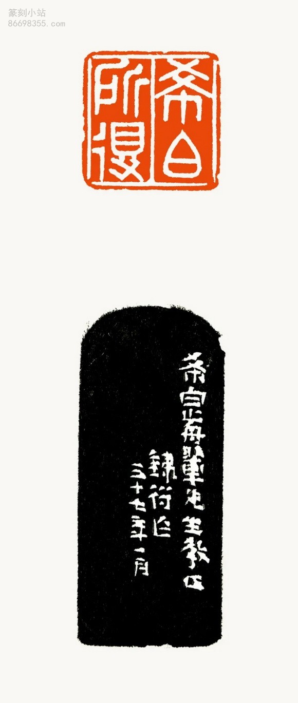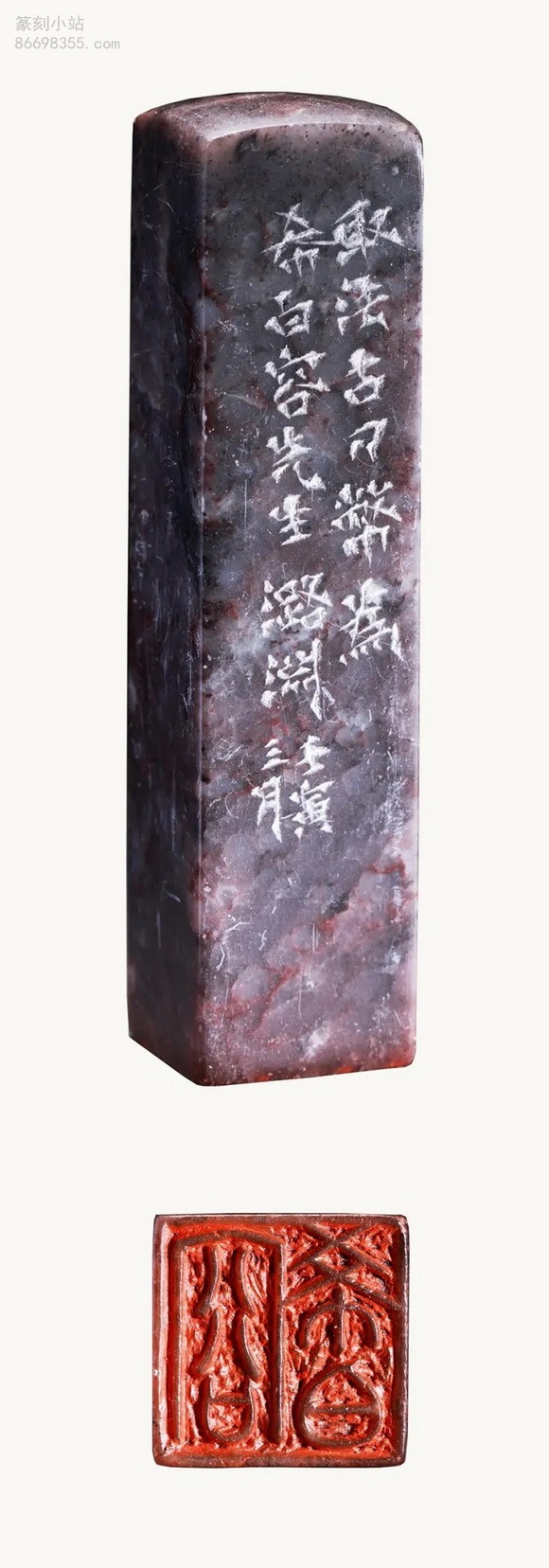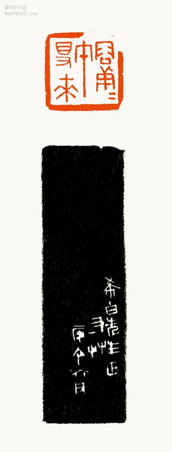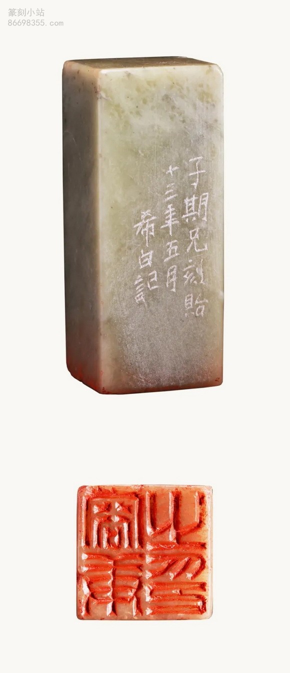 边款释文:仿古玺意 希白先生指正 禹民刻