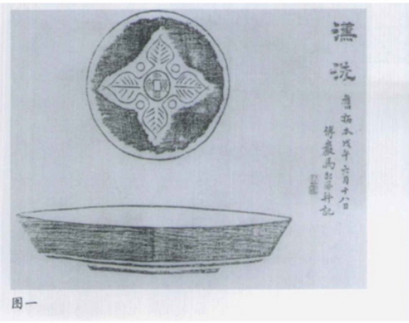 1.马起凤,字傅岩,浙江嘉兴人,生平不详。徐康《前尘梦影录》卷下云:“吴门椎拓金石,向不解作全形,迨道光初年,浙禾马傅岩能之。”(3)容庚《殷周青铜器通论》亦云“彝器全形拓始于嘉庆年间马起凤所拓得汉洗(金石屑一:三三)……今马氏拓本,除金石屑所载外未见他器”(4)。《金石屑》所录汉洗,上有马氏题跋“汉洗,旧拓本,戊午六月十八日,傅岩马起凤并记”(图一)。戊午乃嘉庆三年,由题跋中提及系旧拓本推知,此拓片的捶拓时间应在乾隆年间。由于图像资料缺乏,对于马氏所拓全形的情况,目前我们尚所知寥寥(5)。