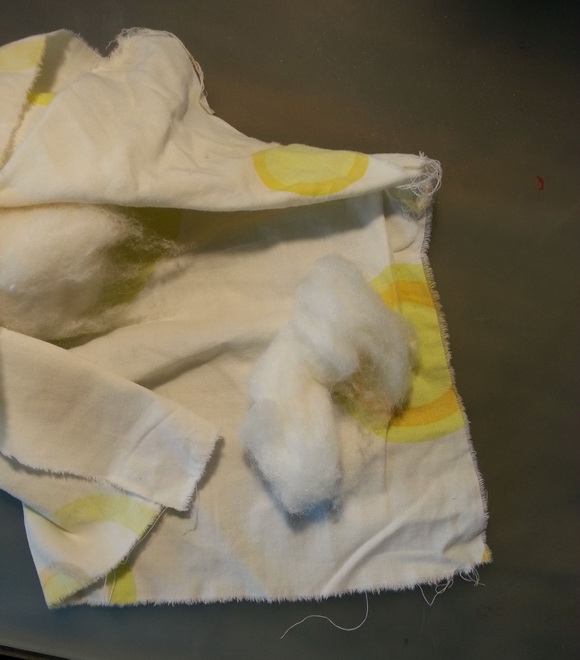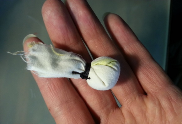 制作钱币拓片应用小一点的拓包,首先介绍一下如何自制拓包。用一小块棉布里面包少许棉花用细线捆扎结实。如图: