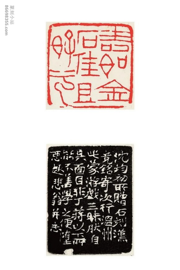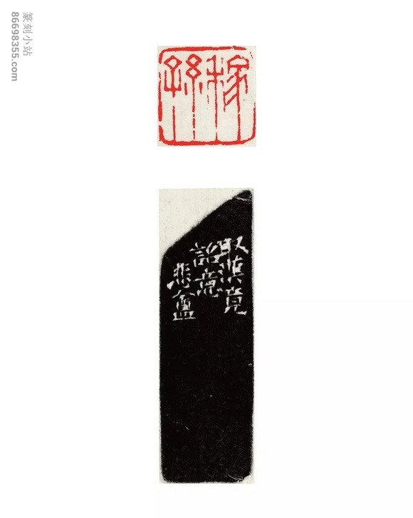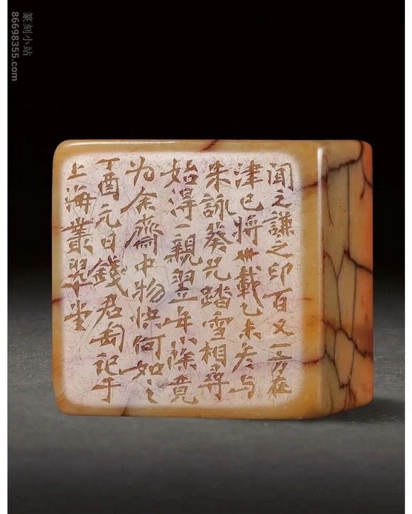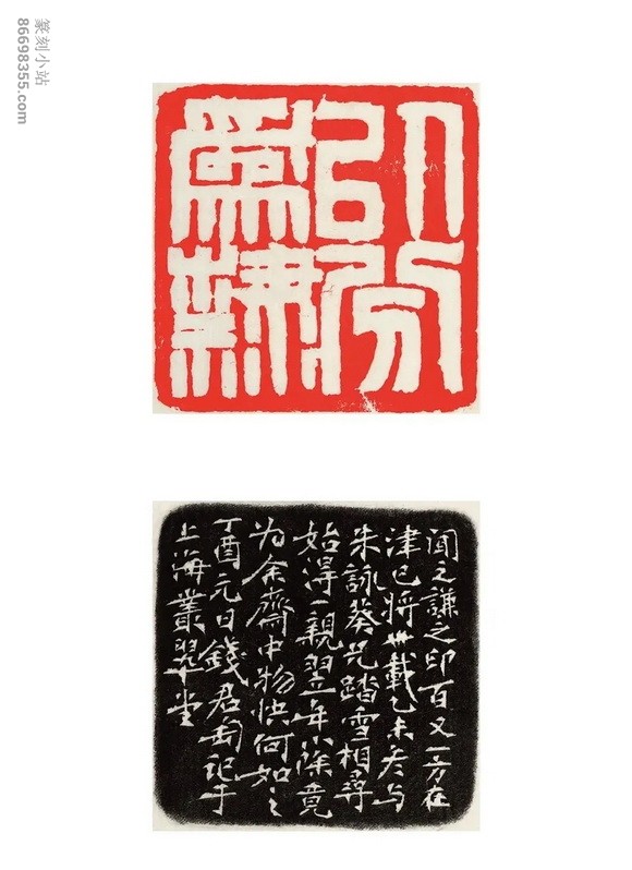 以分为隶,闻之谦之印百又一方,在津已将卅载,乙未冬与朱咏葵兄踏雪相寻,始得一亲。翌年小除,竟为余斋中物,快何如之!丁酉元日,钱君匋记于上海丛翠堂。