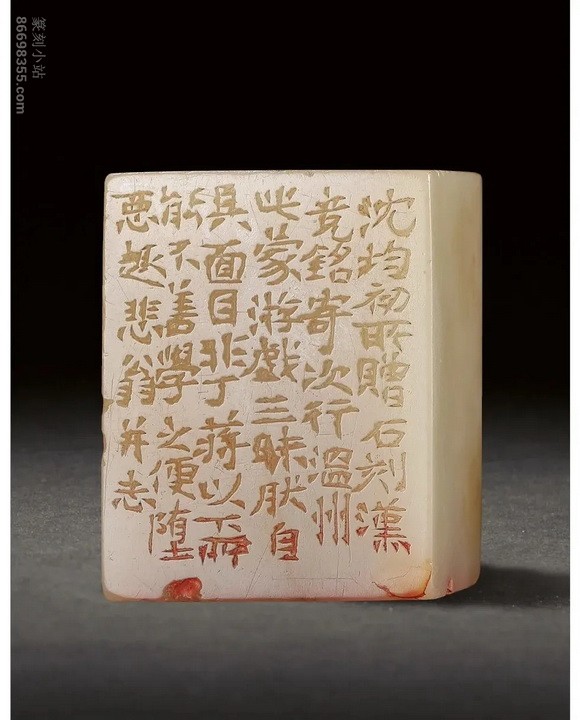 寿如金石佳且好兮,沈均初所赠石,刻汉镜铭,寄次行温州。此蒙游戏三昧,然自具面目,非丁、蒋以下所能,不善学之,便堕恶趣。悲翁并志。