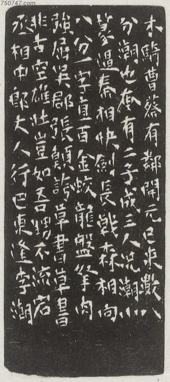 边款:2. “苍颉鸟迹既茫昧,字体变化如浮云。陈仓石鼓又已讹,大小二篆生八分。秦有李斯汉蔡邕,中间作者寂不闻。峄山之碑野火焚,枣木传刻肥失真。苦县光和尚骨立,书贵瘦硬方通神。惜哉(李蔡)不复得,吾甥李潮下笔亲。尚书韩择木,骑曹蔡有邻。开元已来数八分,潮也奄有二子成三人。况潮小篆逼秦相,快剑长戟森相向。八分一字直百金,蛟龙盘拏肉屈强。吴郡张颠夸草书,草书非古空雄壮。岂如吾甥不流宕,丞相中郎丈人行。巴东逢李潮,逾(月)求我歌。我今衰老才力薄,潮乎潮乎奈汝何。(惜哉下落李蔡,逾下落月字。)”福盦工篆隶,醉石为摘杜句以赠,并刻全诗于右。腕力软弱,未能免俗,媿媿。乙卯九月四日同在长沙。