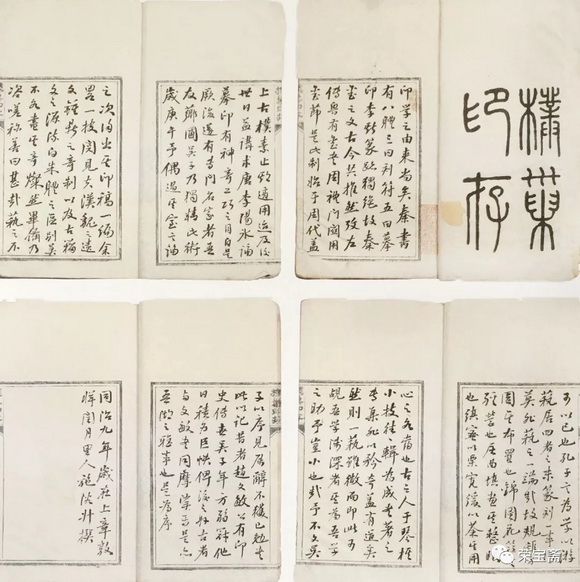 印谱前有施浴升(一八四八——一八九〇)所撰小序,移录如下:“印学之由来尚矣,秦书有八体,三曰刻符,五曰摹印,李斯篆迹独绝,故秦玺之文,古今共推。然考《左传》兴有玺书,《周礼》门关用玺节,是此制始于周代。盖上古朴素,止期适用,迨及后世,日益讲求。唐李阳冰论摹印有神奇工巧之目,自是厥后遂有专门名家者。吾乡芗圃吴子乃独精此术。岁庚午(一八七〇),予偶适其室,言论之次,徐出其印稿一编。余略一批阅,见夫汉魏之遗文、钟鼎之奇制以及古籀文之源流、白朱体之区别,莫不如尽其奇,灿然毕备,乃咨嗟称善曰:‘甚哉,艺之不可以已也。’孔子言为学,以游艺居四者之末,篆刻一事则莫非艺之一端哉。故规矩方圆其布置也,锦团花簇其经营也,屈曲填画其整暇也。缜密以栗,宽缓以荼,其用心之各当也。古之人于琴棋小技,往往辑为成书,著之专集,非以矜奇,盖有道矣。然则一艺虽微,而即此可觇吾学浅深者,其为吾学之助,岂小也哉?予不文,吴子以序见属,辞不获已,勉书此以记。昔者赵文敏公有《印史》传世,吴子年方弱冠,他日积为巨帙,俾后之好古者与文敏书同摩挲焉,是亦吾湖之雅事也。是为序。同治九年岁(一八七〇)在上章敦将闰月,里人施浴升撰。”
