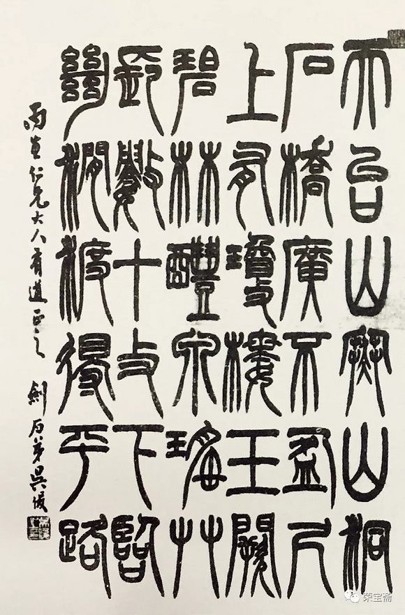从诗中“癸酉登贤书,秋风光门闾”,即《石交录》中“同治癸酉(一八七三)领乡荐”之云。清代的科考制度分为乡试、会试、殿试三级。所谓“乡荐”,即乡试,每三年一次,在省城举行,时间一般均在八月,故又称秋闱,中者称之为“举人”;会试则在乡试后的第二年春季在礼部举行,故又称春闱,中者称之为“贡士”;至于殿试,则是最后由皇帝主持,钦点“三元”。吴昌硕此诗写于施浴升乡试之后的次年,即一八七四年,很有可能是施氏初次北上参加“春闱”的送行诗。至此以后,施浴升曾“五上春官”,均以不第而归,最后在光绪十六年(一八九〇)死于赶考的途中。《朴巢印存》的创作过程中,吴昌硕几乎是囿于安吉这一偏僻的浙西小镇,因此眼界不宽、取法不高,是其明显的特点。这也与他当时深陷鲜有同道交流的困境之中,有着密切的关系。