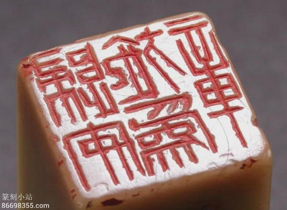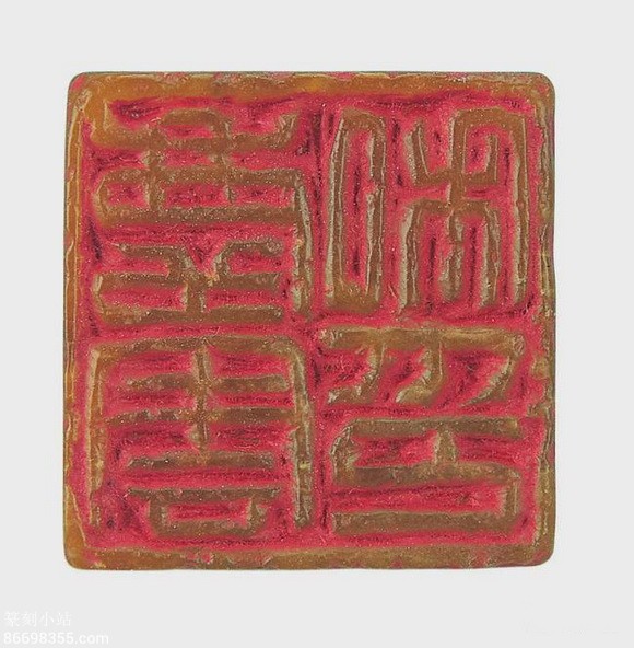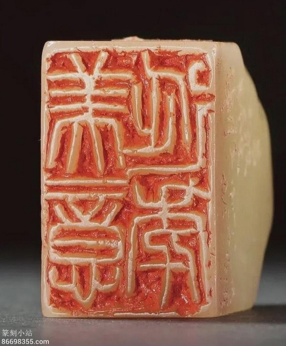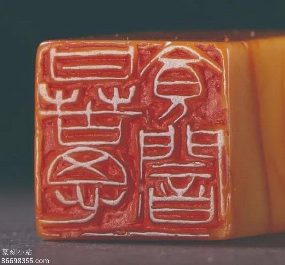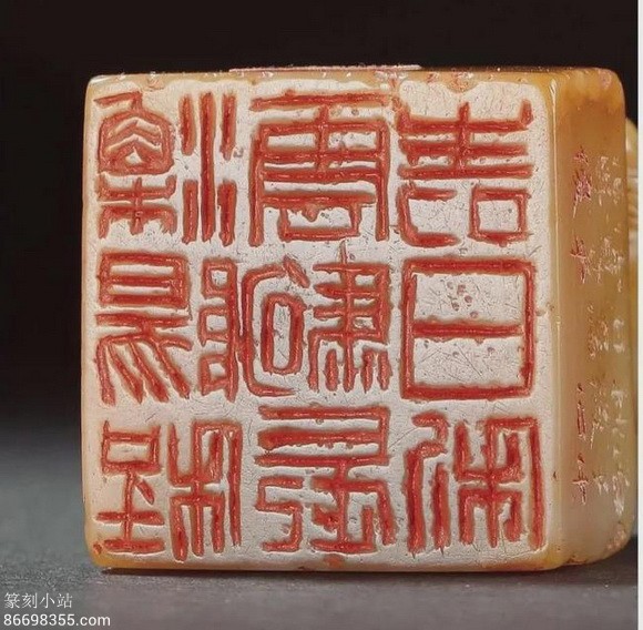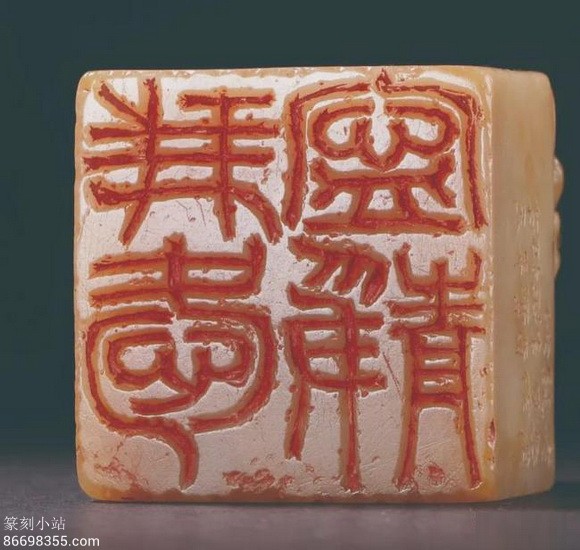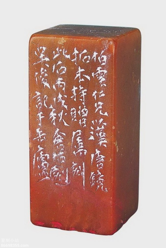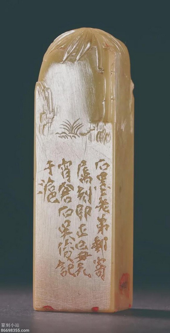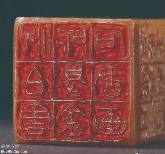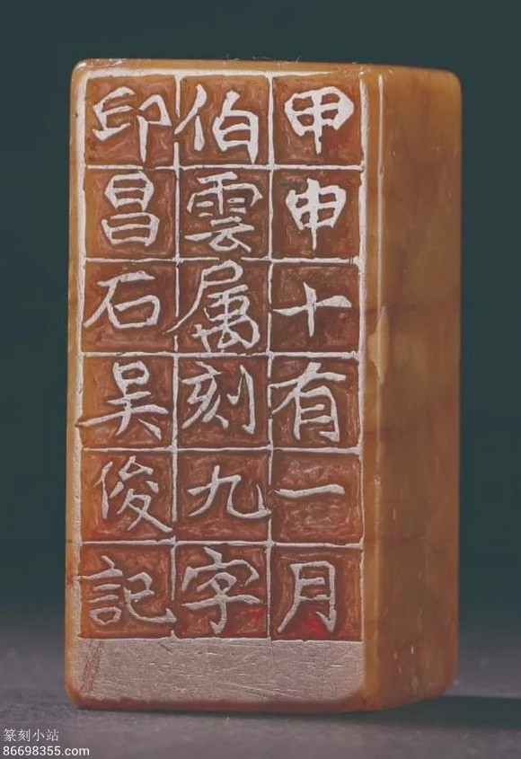 边款:甲申十有一月,伯云属刻九字印。仓石吴俊记。