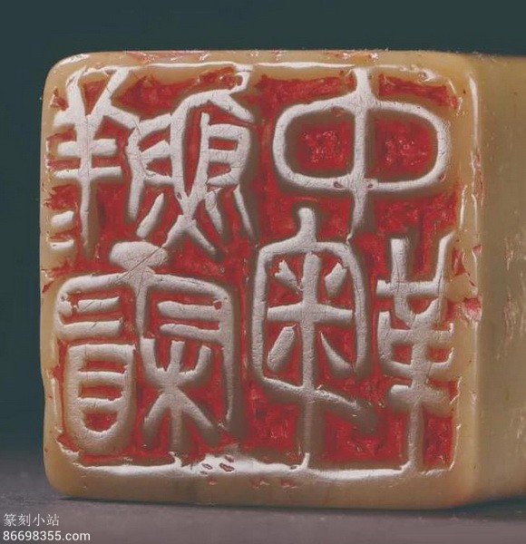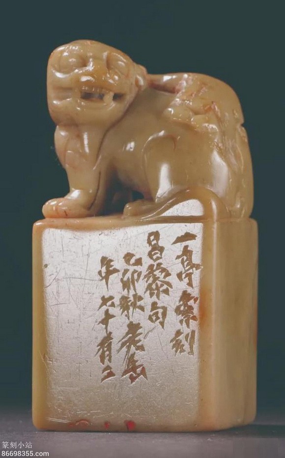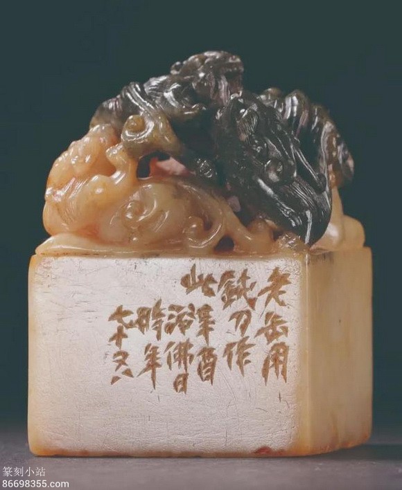 边款:老缶用钝刀作此。辛酉浴佛日,时年七十又八。