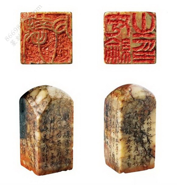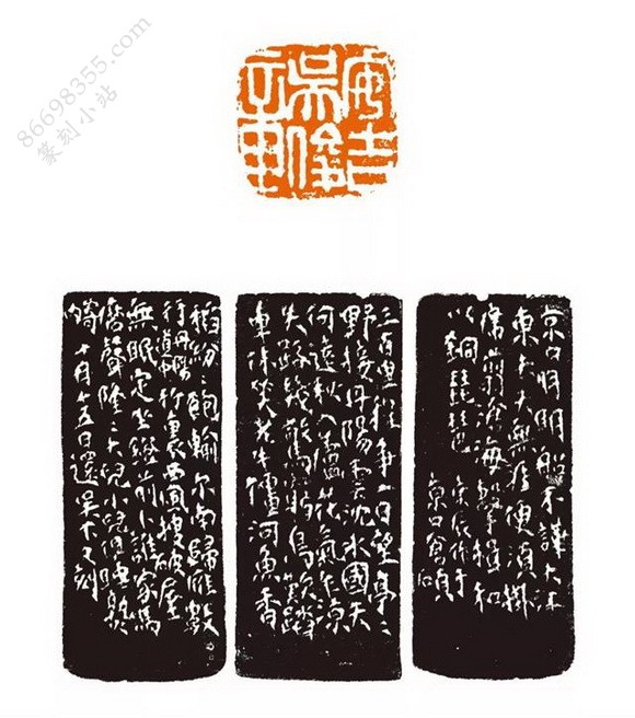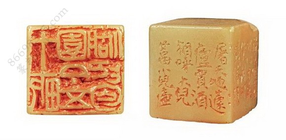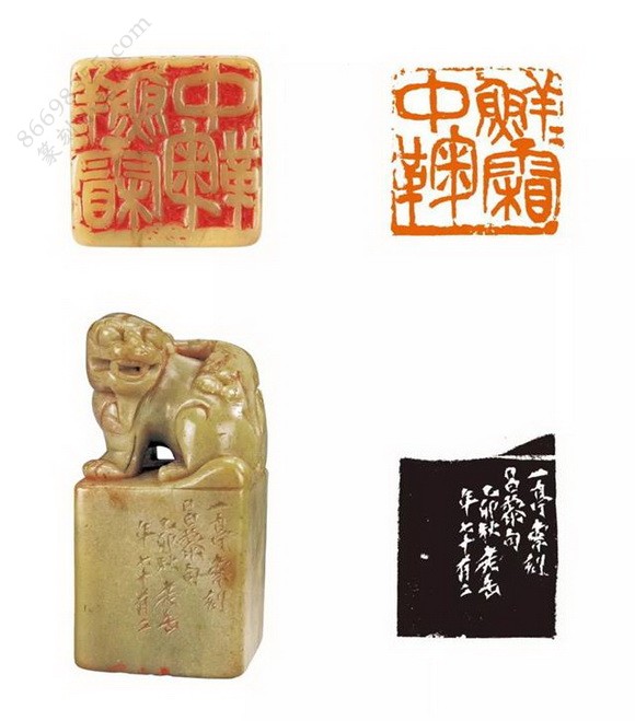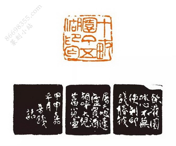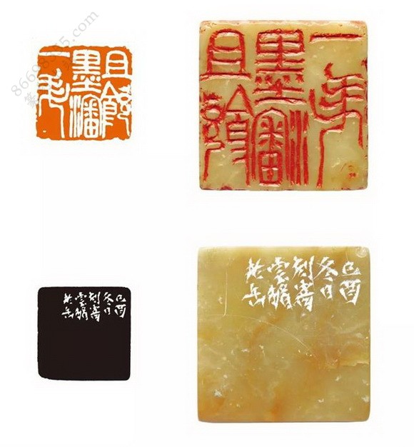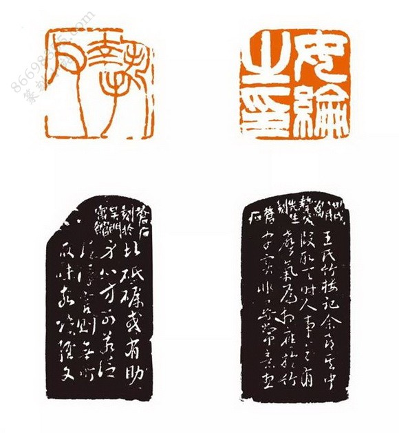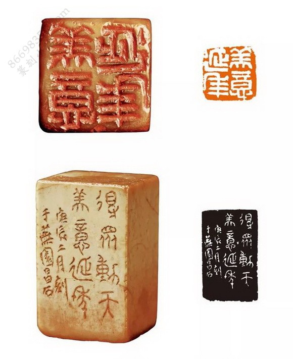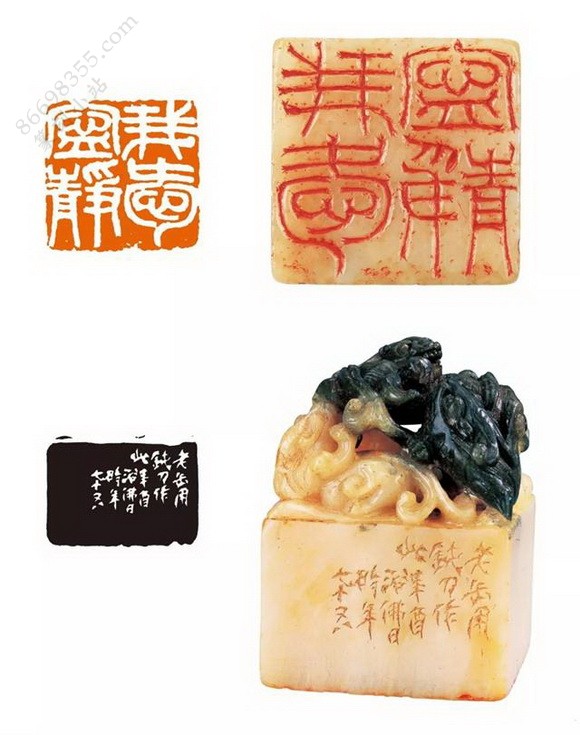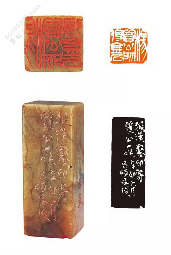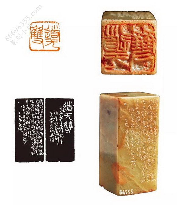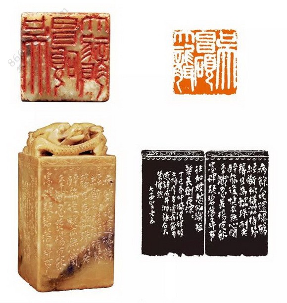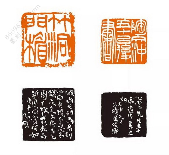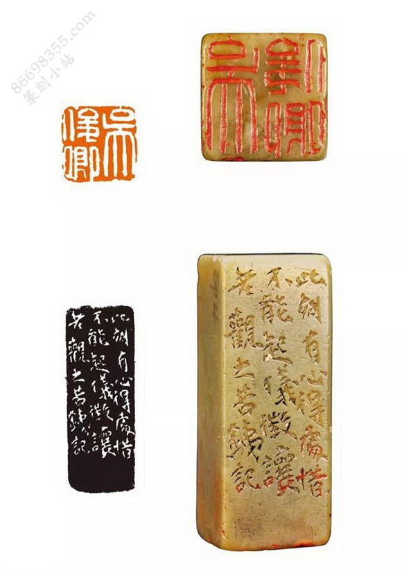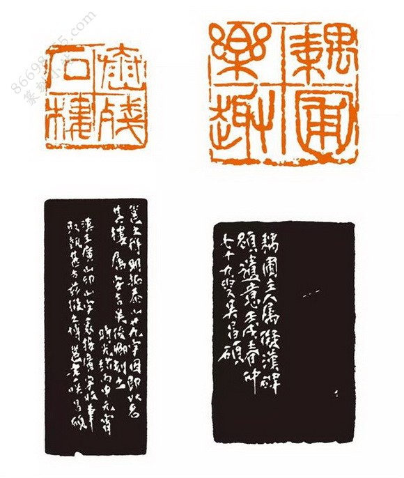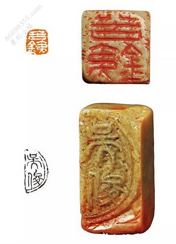 杨岘题《削觚庐印存》诗云:“吴君刓印如刓泥,钝刀硬入随意治。”诚如韩天衡先生所说:“他刻凿击敲印文、边栏和印面,使作品破而不碎,草而不率,粗而不陋,险而不坠,神完意足。”这种综合运用的刀法,或者说后期制作,前无古人,对后世影响极大。