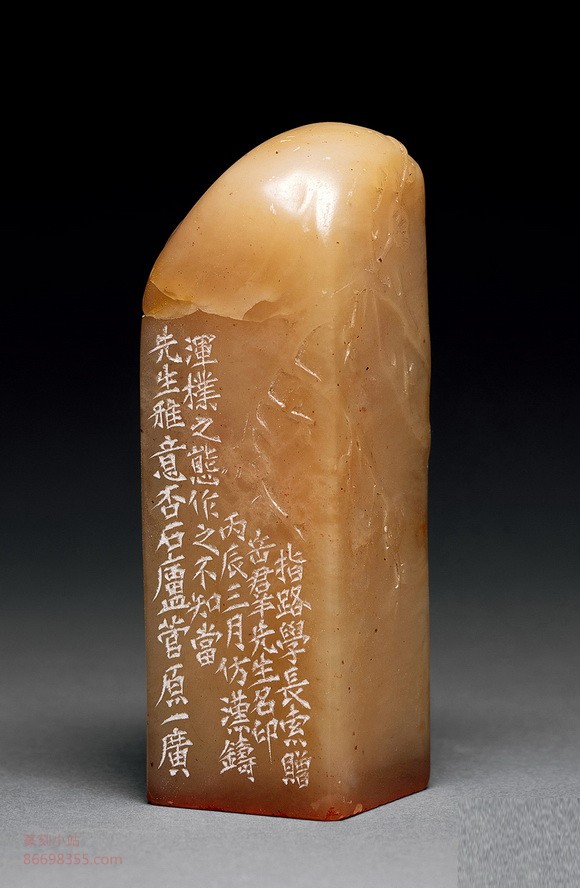 边款:指路学长索赠岳群先生名印,丙辰三月仿汉,铸浑朴之态作之,不知当先生雅意否,石庐菅原一广。