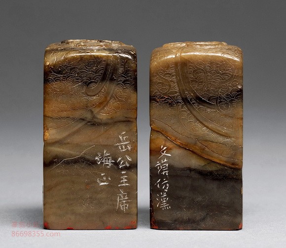 4476 罗文谟刻 张群自用寿山石包袱钮对章