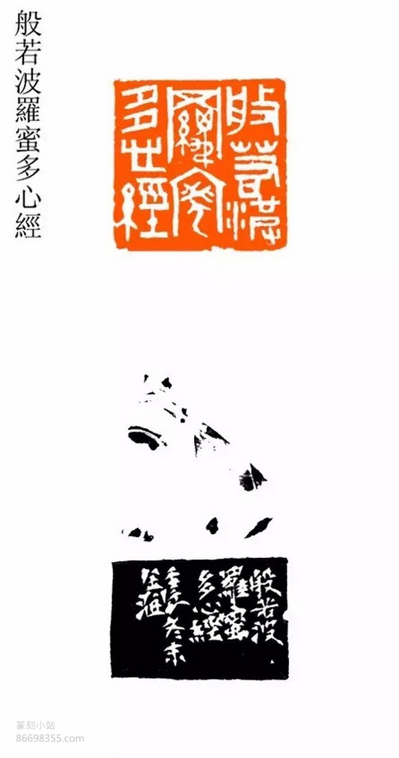 著名篆刻家苏金海先生以佛教重要经典《般若波罗蜜多心经》(简称《心经》)为内容的一部篆刻作品集.《心经》全文五十二句,作者以一句为一印,将”揭谛揭谛”一句分刻不同形制的两印,加上标题,共五十四印。