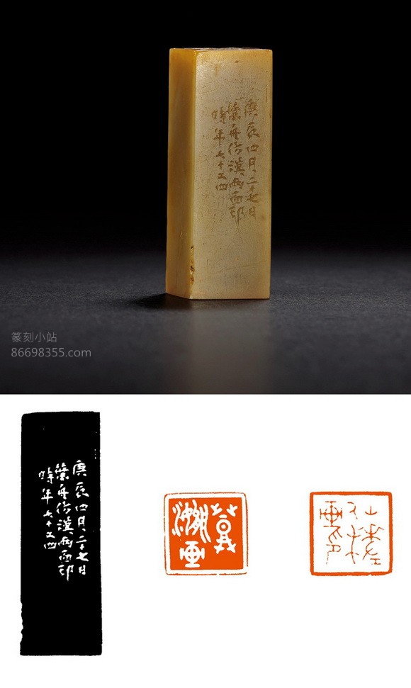 边款: 庚辰四月二十七日,叶舟彷汉两面印,时年七十又三。