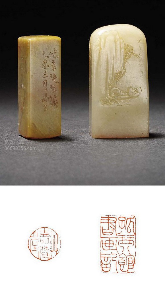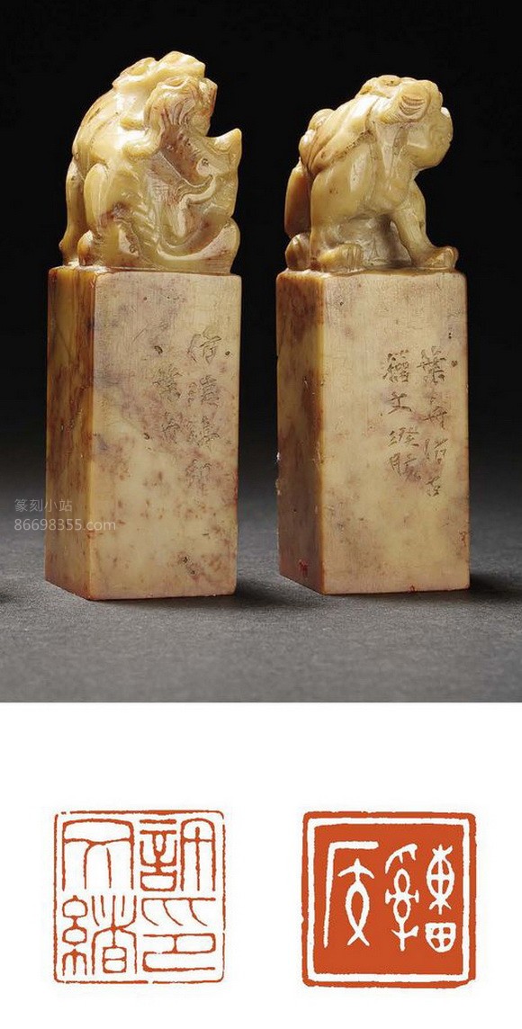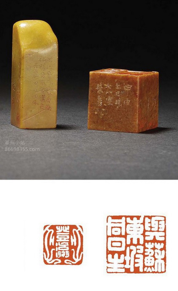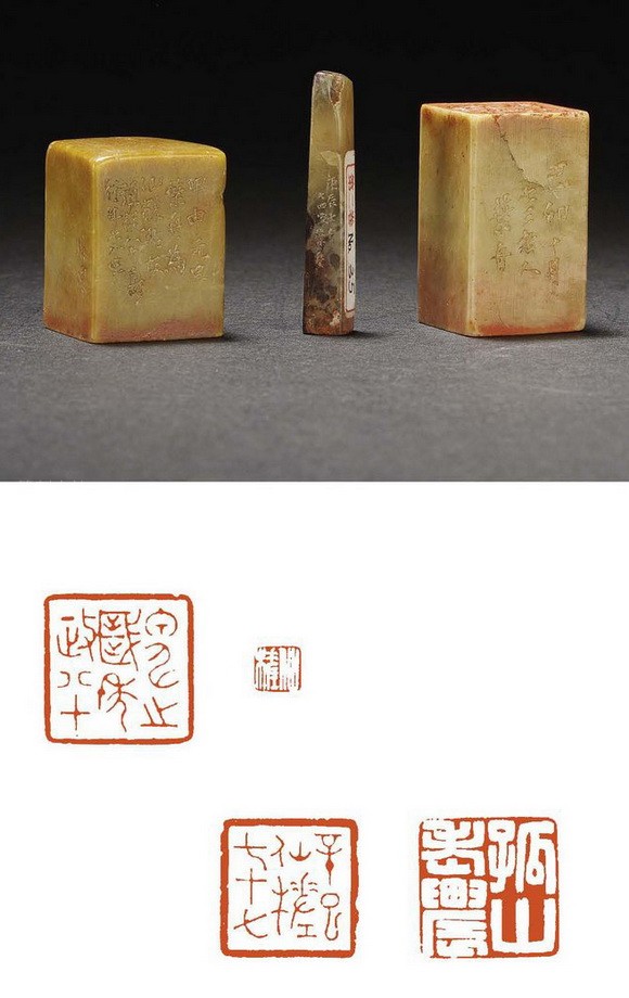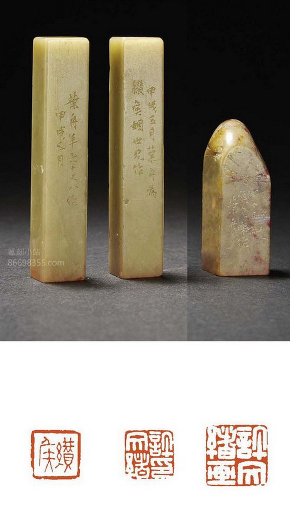 边款: 1.叶舟年六十又八作,甲戌五月。2.甲戌五月叶舟为缵侯姻世兄作。3.彷汉铸印,叶舟。