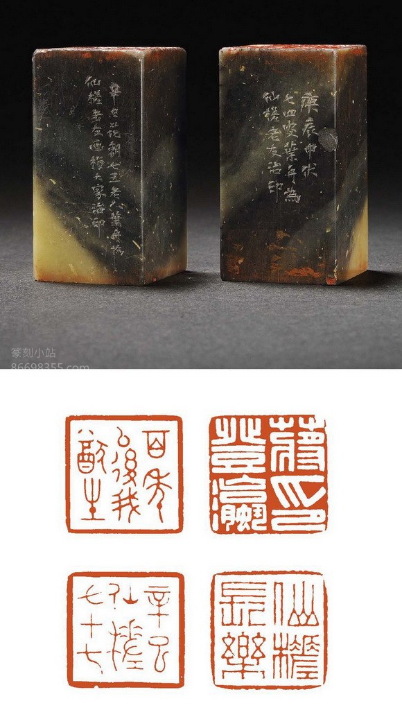 边款: 1.庚辰中伏七四叟叶舟,为仙槎老友治印。孤山老人属,丁丑三月鸿作。2.辛巳花朝,七五老人叶舟,为仙槎老友画梅大家治印。
