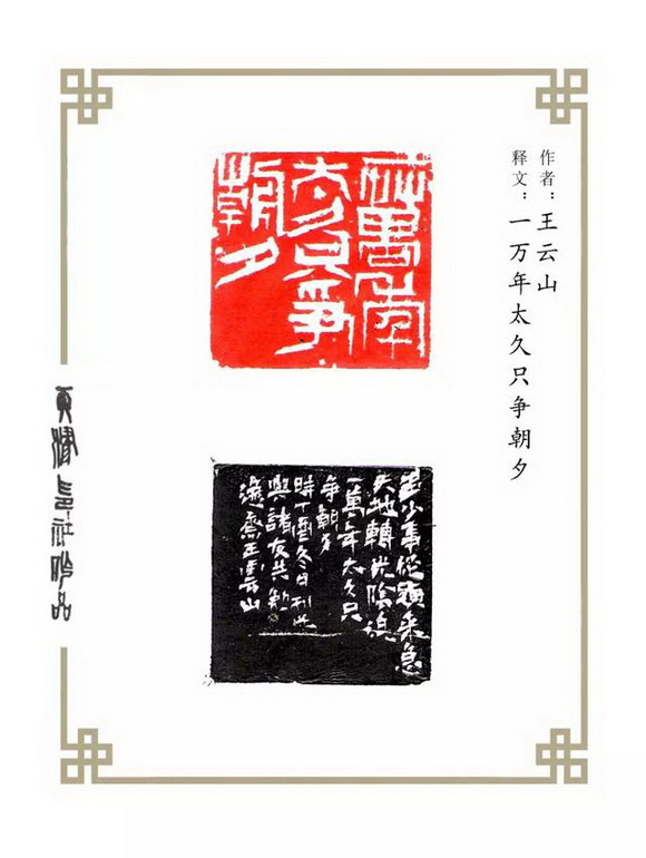 王云山,别署逸斋。1963年生于天津,上世纪八十年代初从杨鲁安,孙家潭先生为师,初学秦汉,转学黄士陵,后攻唐宋官印之风。荣获西泠印社第六届全国篆刻评展一等奖,全国第六届篆刻艺术展二等奖,中央电视台全国电视书法篆刻大赛银奖,两次荣获内蒙古自治区“萨日纳”艺术创作政府奖,2009年中国书法家协会先进个人奖。现为西泠印社社员,中国书法家协会会员,内蒙古书协篆刻委员会主任,内蒙古北疆印社社长,天津印社艺术顾问。