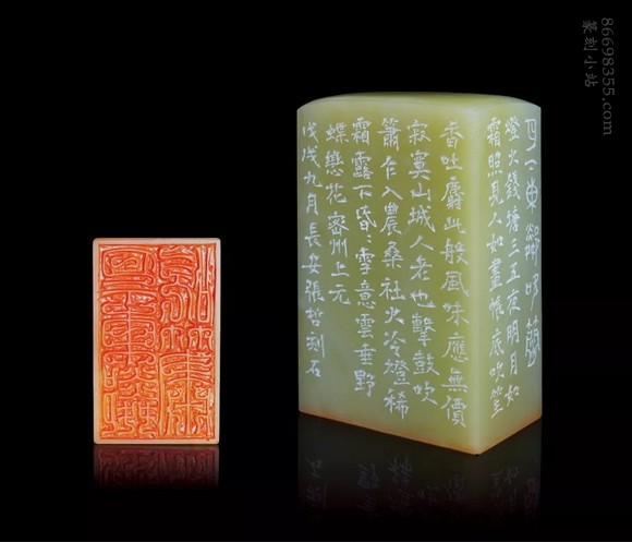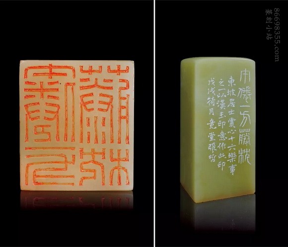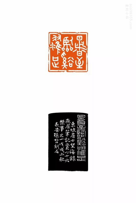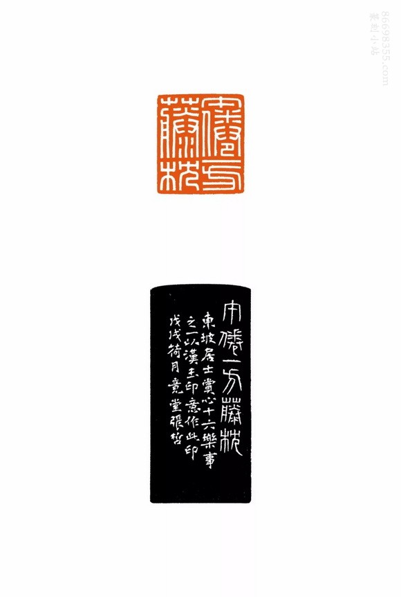 午倦一方藤枕。东坡居士赏心十六乐事之一。以汉玉印意作此印。戊戌荷月,竟堂张哲。
