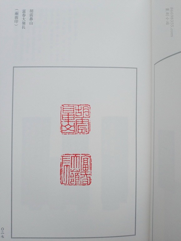 《钱松胡震两家印存》以国家图书馆提供的清同治三年(1864)钤印本10册为底版,进行高清扫描、精心释文,存浙派印人钱松、胡震两家印150余方,多附边款。胡震在二十七岁时,结识了钱松,“始大叹服,自是搁笔不复为人刻画金石矣”。年长一岁的胡震甘执弟子礼,与钱松结为师友,二十余年往来无间,两人之间更是互赠佳作。在胡震去世二年后,即同治甲子(1864)年,曾任富阳观察(道员)的同里好友应宝时收集钱、胡二人遗作,拓印成轶。钱松、胡震之印存世稀少,从此谱中可一瞻其面貌。