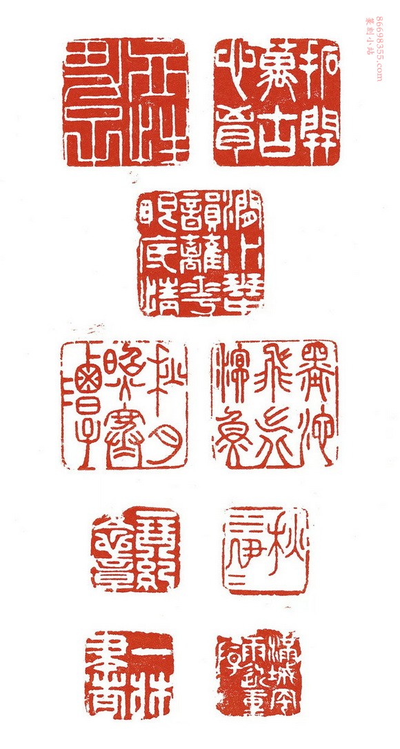 注:闲章,是指姓名、斋号、职官、鉴藏印等以外的印章。它是从秦汉时的吉语印演变而来,除刻吉语外,还常刻诗句、格言、自戒之词等。