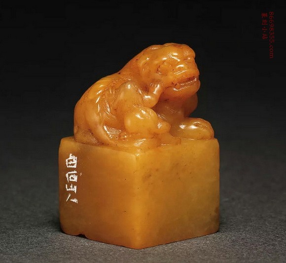 Lot 4798 齐白石刻 寿山田黄石太狮少狮钮印章