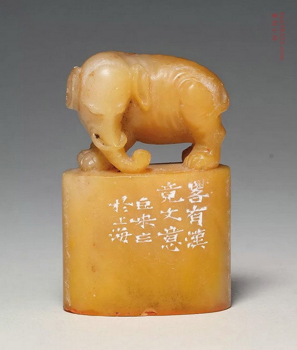 Lot 5002 陈巨来刻 “思在江湖”寿山石象钮印章