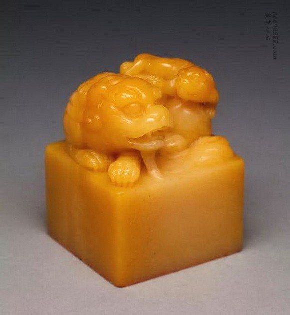 赵之琛刻寿山田黄石太狮少狮钮方章,杨玉璇制钮,印文:燕山宋氏金坡珍藏书画印,印面尺寸:4×4厘米,高5厘米,重164克,中国嘉德2018年春季拍卖会,成交价格667万元。