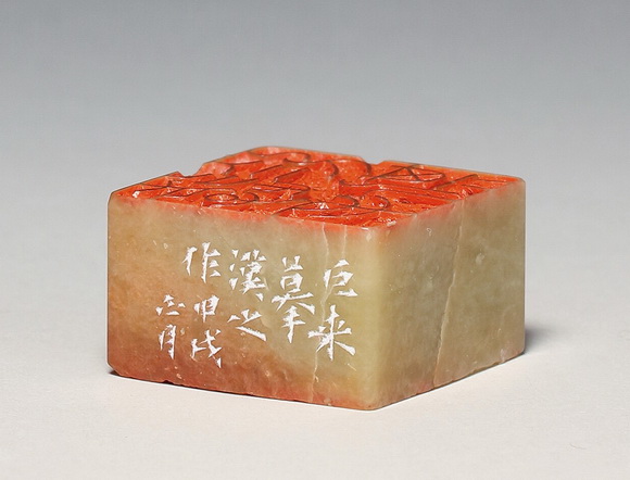 边款:巨来摹汉之作,甲戌正月。此余二十三岁所刻,巨来记,丁未六月,年六十三矣。