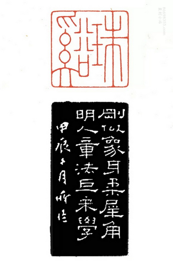 边款:刚似象牙柔犀角,明人章法巨来学,甲辰十月所作。
