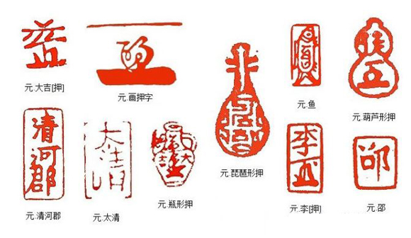 元押多为长方,一般上刻楷书姓氏,下刻八思巴文或花押。从实用意义上说历代印章大都有防奸辨伪的作用,作为个人任意书写,变化出来的”押字”(有些已不是一种文字,只作为个人专用记号),自然就更难以摹仿而达到防伪的效果,因而这种押字一直沿用到明清时代。
