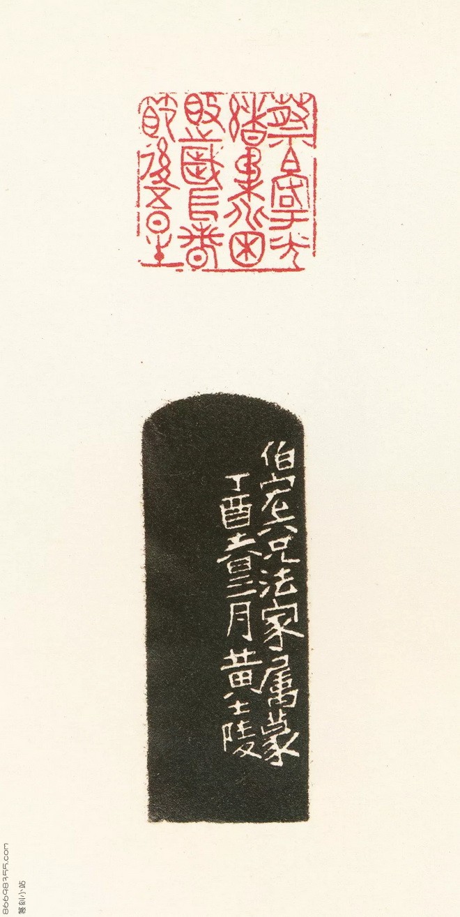 边款:伯宏六兄法家属篆。丁酉春三月,黄士陵。