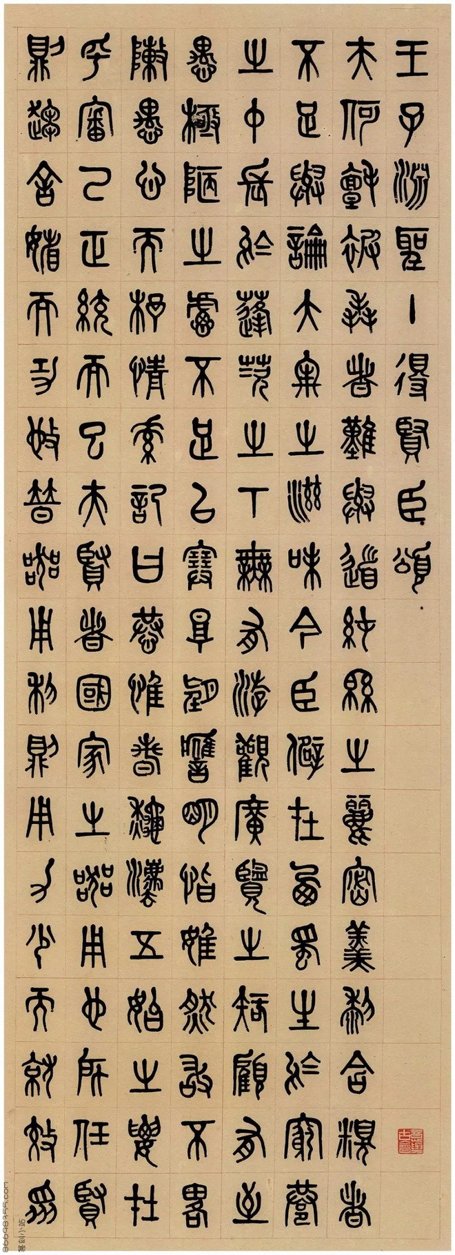 黄牧甫篆书六屏,王子渊圣主得贤臣颂,得以一窥全貌 《王子渊圣主得贤臣颂》六条屏全篇八九十四字,是迄今所见黄牧甫规模最为宏大的一件墨迹,书于光绪二十三年 ( 一八九七 ) 七月,处于他的艺术创作创新期的后段,是他这一阶段的代表作。 2015年香港苏富比以20万港币起拍,深圳藏家祝先生于2015年以272万港币拍得这一堂黄牧甫的鸿篇巨制。现予以出版,得以一窥全貌。 印谱.教程.技法 - 分享 加微信获取:wenbaozhai365